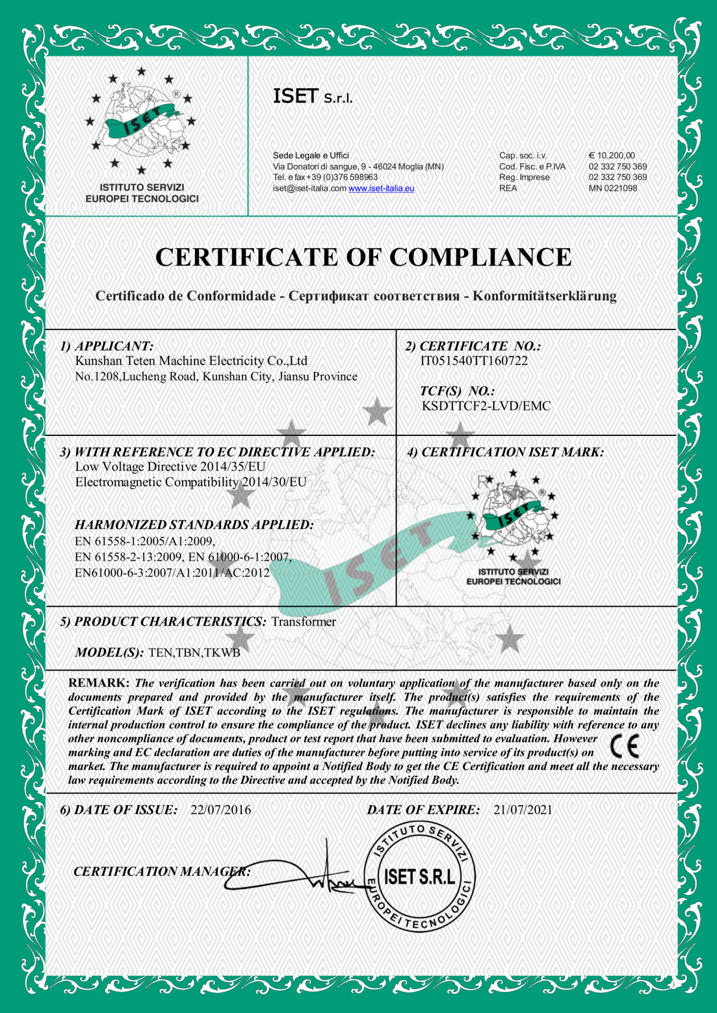 欧洲地区认证