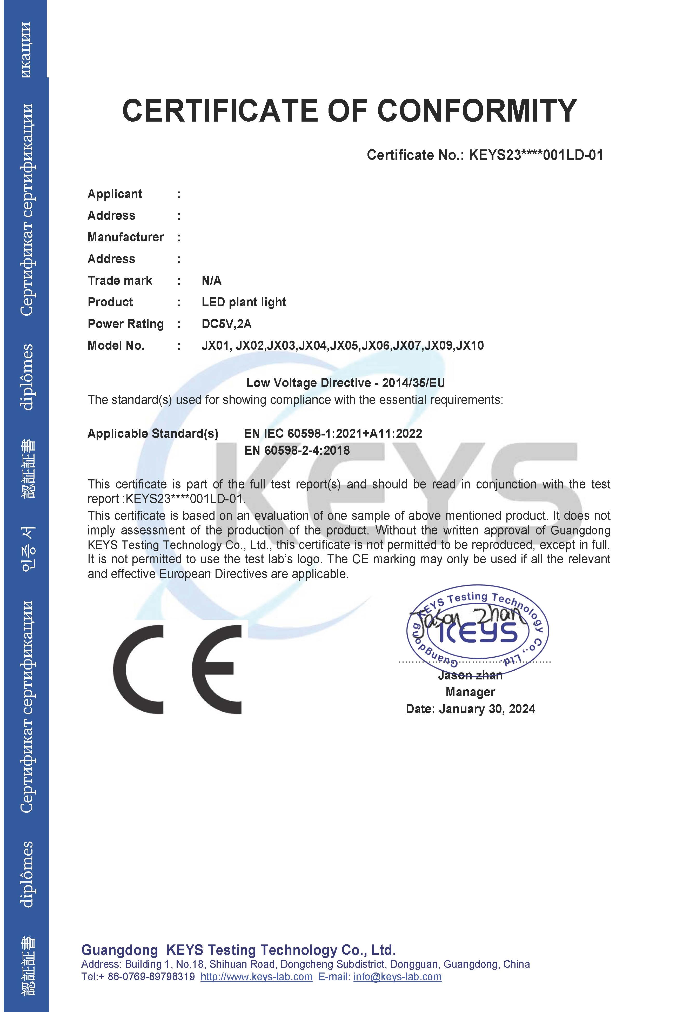 证书样本
